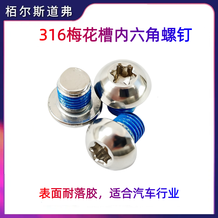 316梅花槽螺钉,采用耐腐蚀性极佳的316不锈钢材质,其头部特有的梅花槽(Torx)设计提供了优异的抗拧滑能力和高扭矩传输。表面涂覆的耐落胶(工程塑料或尼龙涂层),能在螺纹间产生持久摩擦力与阻尼效应,有效防止因振动导致的松动脱落。此组合使其成为汽车行业,尤其在关键电子部件及振动环境中,备受青睐的紧固解决方案。
